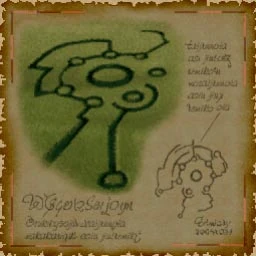 It can be speculated, given the look of the discovery, that this is an incomplete version of a Black Moon Stone crest. The rings have seven circles around the center of the rings, instead of one to six like the others and the lines make up part of the design. However, nothing confirms this and could be merely coincidence.